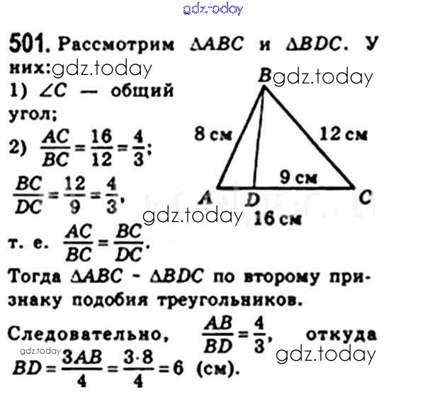 На страницах сайта gdz.today вы найдете учебный и вспомогательный материал, направленный на улучшения знаний школьной программы. ГДЗ - онлайн мир знаний § 14. Второй и третий признак подобия треугольника Решение. Глава 2. Подобие треугольников 501 Учебнику по Геометрии для 8 класса Мерзляк, Полонский Вентана-граф Алгоритм успеха 2015