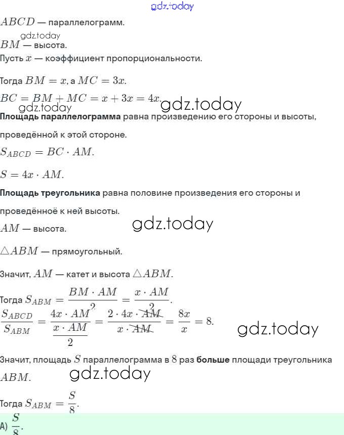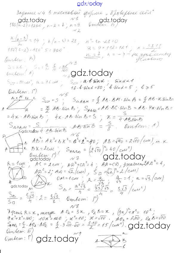На страницах сайта gdz.today вы найдете учебный и вспомогательный материал, направленный на улучшения знаний школьной программы. ГДЗ - онлайн мир знаний Проверь себя Решение. Глава 4. Многоугольники. Площадь многоугольника №4 Учебнику по Геометрии для 8 класса Мерзляк, Полонский Вентана-граф Алгоритм успеха 2015