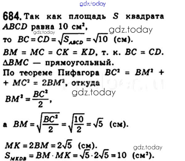 Ответы к § 20. Понятие площади многоугольника. Площадь прямоугольника Решение. Глава 4. Многоугольники. Площадь многоугольника 684 Учебнику по Геометрии для 8 класса Мерзляк, Полонский Вентана-граф Алгоритм успеха 2015
