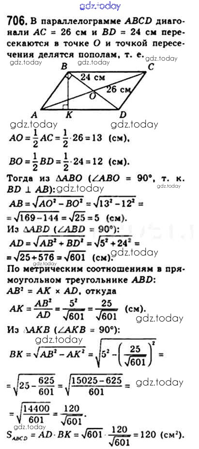 Ответы к § 21. Площадь параллелограмма Решение. Глава 4. Многоугольники. Площадь многоугольника 706 Учебнику по Геометрии для 8 класса Мерзляк, Полонский Вентана-граф Алгоритм успеха 2015