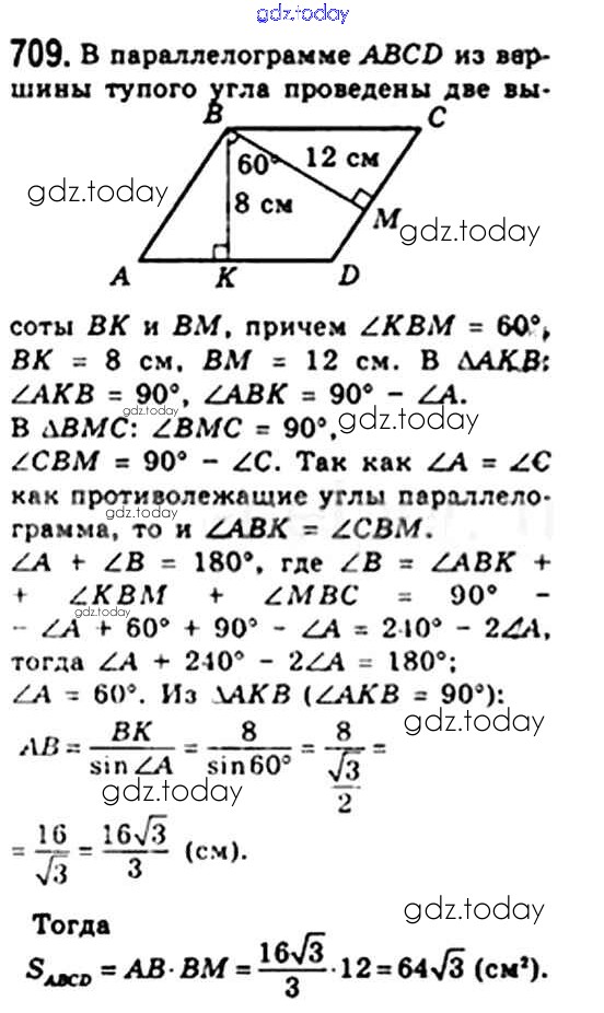 Ответы к § 21. Площадь параллелограмма Решение. Глава 4. Многоугольники. Площадь многоугольника 709 Учебнику по Геометрии для 8 класса Мерзляк, Полонский Вентана-граф Алгоритм успеха 2015
