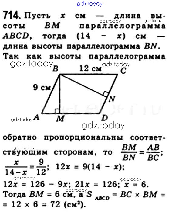 Ответы к § 21. Площадь параллелограмма Решение. Глава 4. Многоугольники. Площадь многоугольника 714 Учебнику по Геометрии для 8 класса Мерзляк, Полонский Вентана-граф Алгоритм успеха 2015