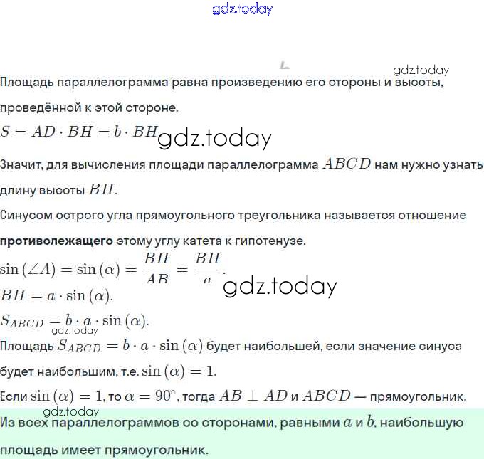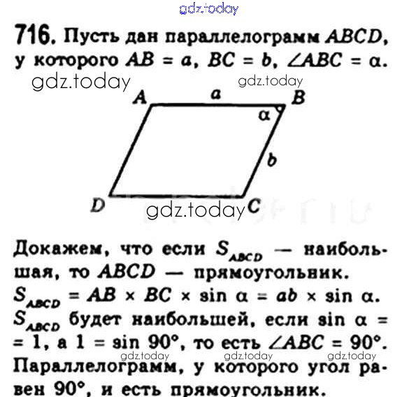 На страницах сайта gdz.today вы найдете учебный и вспомогательный материал, направленный на улучшения знаний школьной программы. ГДЗ - онлайн мир знаний § 21. Площадь параллелограмма Решение. Глава 4. Многоугольники. Площадь многоугольника 716 Учебнику по Геометрии для 8 класса Мерзляк, Полонский Вентана-граф Алгоритм успеха 2015