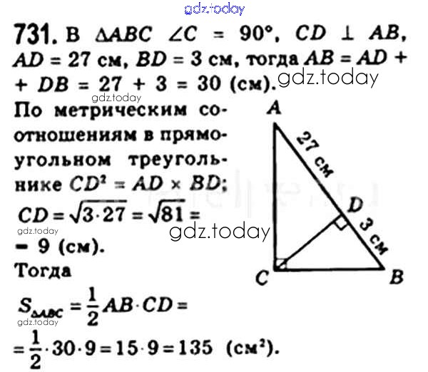 Ответы к § 22. Площадь треугольника Решение. Глава 4. Многоугольники. Площадь многоугольника 731 Учебнику по Геометрии для 8 класса Мерзляк, Полонский Вентана-граф Алгоритм успеха 2015