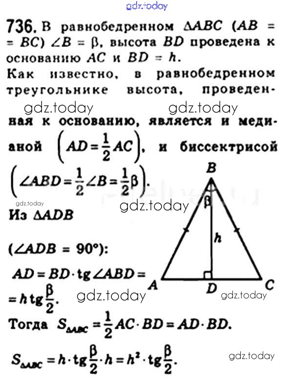 Ответы к § 22. Площадь треугольника Решение. Глава 4. Многоугольники. Площадь многоугольника 736 Учебнику по Геометрии для 8 класса Мерзляк, Полонский Вентана-граф Алгоритм успеха 2015