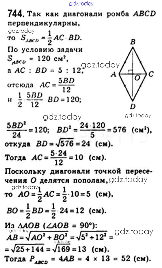 Ответы к § 22. Площадь треугольника Решение. Глава 4. Многоугольники. Площадь многоугольника 744 Учебнику по Геометрии для 8 класса Мерзляк, Полонский Вентана-граф Алгоритм успеха 2015