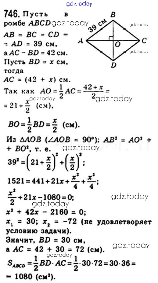 Ответы к § 22. Площадь треугольника Решение. Глава 4. Многоугольники. Площадь многоугольника 746 Учебнику по Геометрии для 8 класса Мерзляк, Полонский Вентана-граф Алгоритм успеха 2015