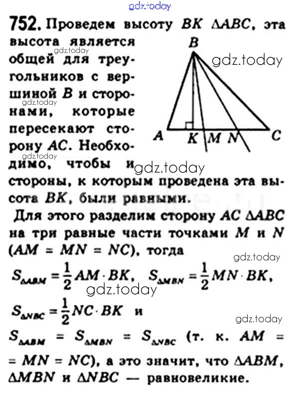 Ответы к § 22. Площадь треугольника Решение. Глава 4. Многоугольники. Площадь многоугольника 752 Учебнику по Геометрии для 8 класса Мерзляк, Полонский Вентана-граф Алгоритм успеха 2015