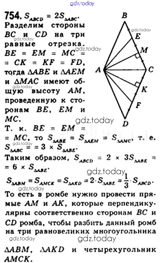 Ответы к § 22. Площадь треугольника Решение. Глава 4. Многоугольники. Площадь многоугольника 754 Учебнику по Геометрии для 8 класса Мерзляк, Полонский Вентана-граф Алгоритм успеха 2015