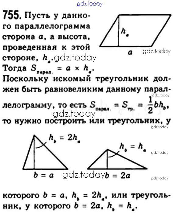 Ответы к § 22. Площадь треугольника Решение. Глава 4. Многоугольники. Площадь многоугольника 755 Учебнику по Геометрии для 8 класса Мерзляк, Полонский Вентана-граф Алгоритм успеха 2015