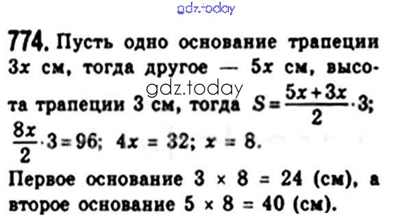 Ответы к § 23. Площадь трапеции Решение. Глава 4. Многоугольники. Площадь многоугольника 774 Учебнику по Геометрии для 8 класса Мерзляк, Полонский Вентана-граф Алгоритм успеха 2015