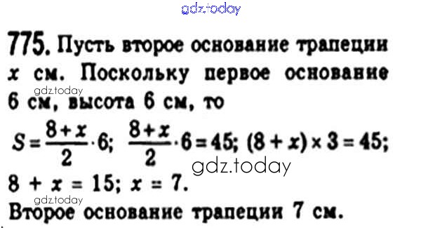 Ответы к § 23. Площадь трапеции Решение. Глава 4. Многоугольники. Площадь многоугольника 775 Учебнику по Геометрии для 8 класса Мерзляк, Полонский Вентана-граф Алгоритм успеха 2015