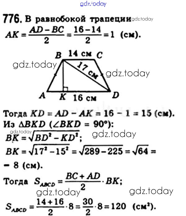 Ответы к § 23. Площадь трапеции Решение. Глава 4. Многоугольники. Площадь многоугольника 776 Учебнику по Геометрии для 8 класса Мерзляк, Полонский Вентана-граф Алгоритм успеха 2015