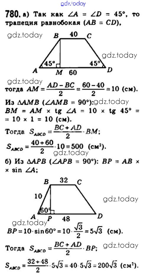 Ответы к § 23. Площадь трапеции Решение. Глава 4. Многоугольники. Площадь многоугольника 780 Учебнику по Геометрии для 8 класса Мерзляк, Полонский Вентана-граф Алгоритм успеха 2015
