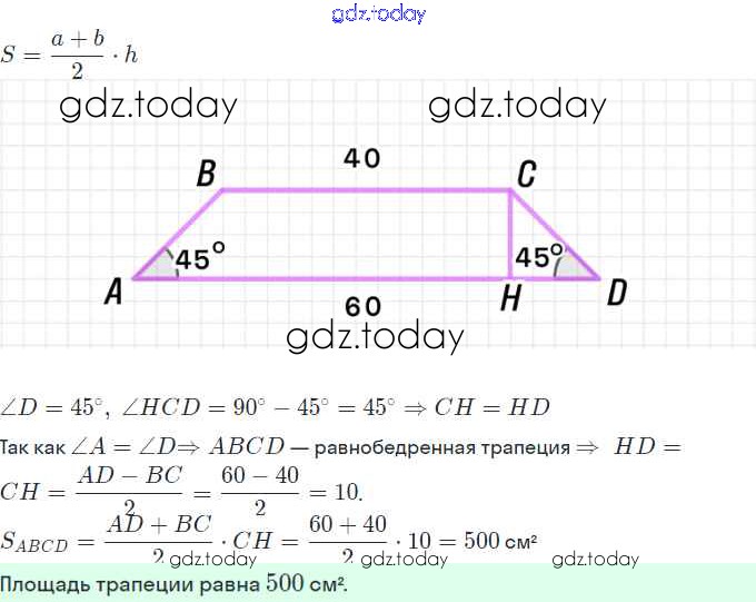 На страницах сайта gdz.today вы найдете учебный и вспомогательный материал, направленный на улучшения знаний школьной программы. ГДЗ - онлайн мир знаний § 23. Площадь трапеции Решение. Глава 4. Многоугольники. Площадь многоугольника 780 Учебнику по Геометрии для 8 класса Мерзляк, Полонский Вентана-граф Алгоритм успеха 2015