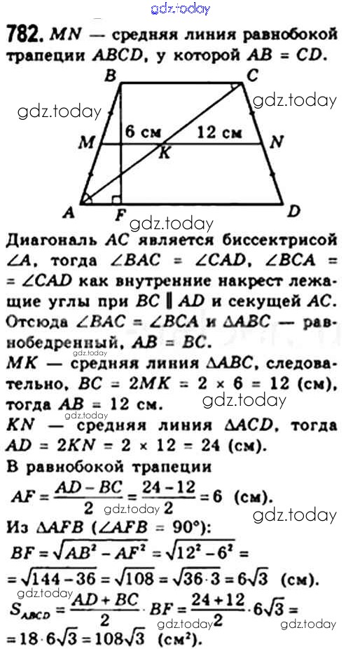 Ответы к § 23. Площадь трапеции Решение. Глава 4. Многоугольники. Площадь многоугольника 782 Учебнику по Геометрии для 8 класса Мерзляк, Полонский Вентана-граф Алгоритм успеха 2015