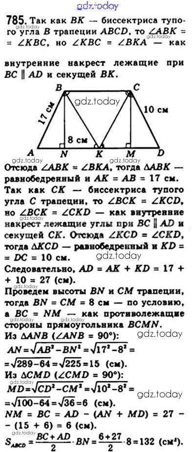 Ответы к § 23. Площадь трапеции Решение. Глава 4. Многоугольники. Площадь многоугольника 785 Учебнику по Геометрии для 8 класса Мерзляк, Полонский Вентана-граф Алгоритм успеха 2015