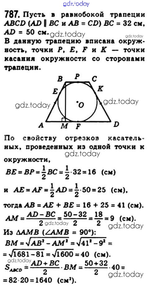 Ответы к § 23. Площадь трапеции Решение. Глава 4. Многоугольники. Площадь многоугольника 787 Учебнику по Геометрии для 8 класса Мерзляк, Полонский Вентана-граф Алгоритм успеха 2015