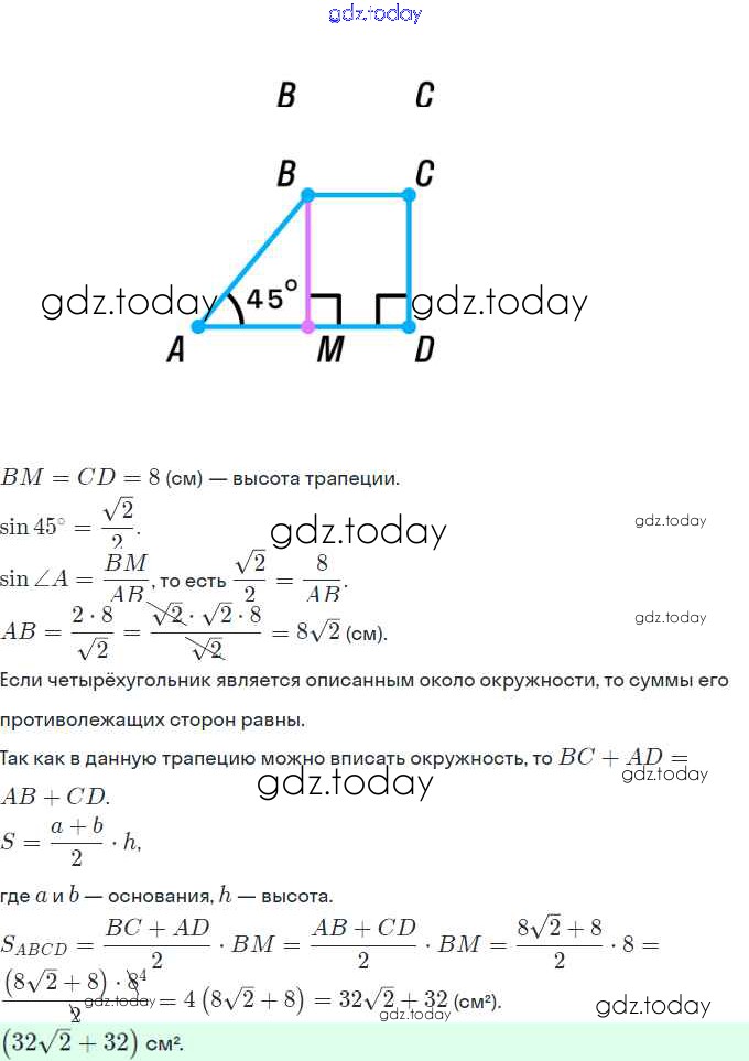 На страницах сайта gdz.today вы найдете учебный и вспомогательный материал, направленный на улучшения знаний школьной программы. ГДЗ - онлайн мир знаний § 23. Площадь трапеции Решение. Глава 4. Многоугольники. Площадь многоугольника 788 Учебнику по Геометрии для 8 класса Мерзляк, Полонский Вентана-граф Алгоритм успеха 2015