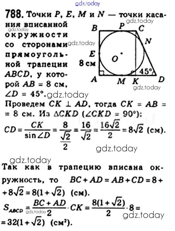 Ответы к § 23. Площадь трапеции Решение. Глава 4. Многоугольники. Площадь многоугольника 788 Учебнику по Геометрии для 8 класса Мерзляк, Полонский Вентана-граф Алгоритм успеха 2015