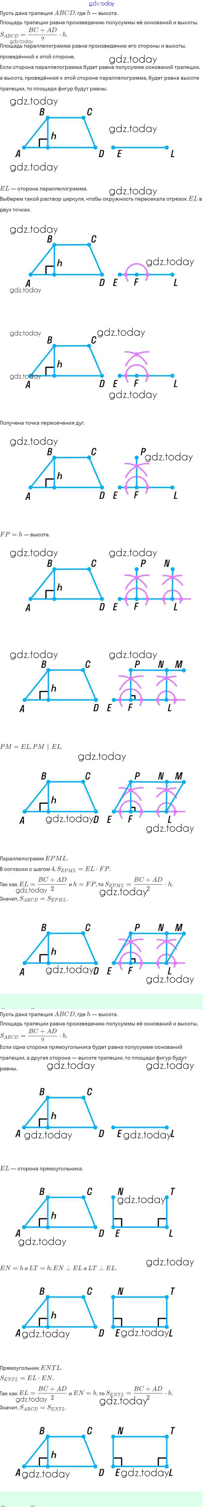 На страницах сайта gdz.today вы найдете учебный и вспомогательный материал, направленный на улучшения знаний школьной программы. ГДЗ - онлайн мир знаний § 23. Площадь трапеции Решение. Глава 4. Многоугольники. Площадь многоугольника 791 Учебнику по Геометрии для 8 класса Мерзляк, Полонский Вентана-граф Алгоритм успеха 2015