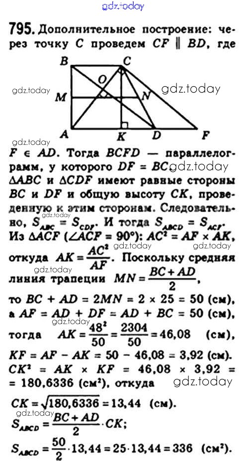 Ответы к § 23. Площадь трапеции Решение. Глава 4. Многоугольники. Площадь многоугольника 795 Учебнику по Геометрии для 8 класса Мерзляк, Полонский Вентана-граф Алгоритм успеха 2015