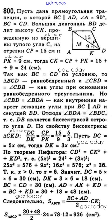 Ответы к § 23. Площадь трапеции Решение. Глава 4. Многоугольники. Площадь многоугольника 800 Учебнику по Геометрии для 8 класса Мерзляк, Полонский Вентана-граф Алгоритм успеха 2015