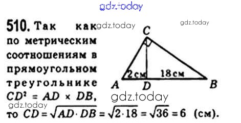 Ответы к § 15. Метрические соотношения в прямоугольном треугольнике Решение. Глава 3. Решение прямоугольных треугольников 510 Учебнику по Геометрии для 8 класса Мерзляк, Полонский Вентана-граф Алгоритм успеха 2015