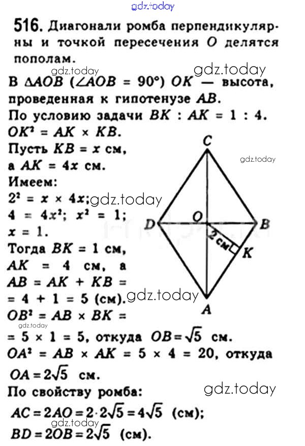 Ответы к § 15. Метрические соотношения в прямоугольном треугольнике Решение. Глава 3. Решение прямоугольных треугольников 516 Учебнику по Геометрии для 8 класса Мерзляк, Полонский Вентана-граф Алгоритм успеха 2015