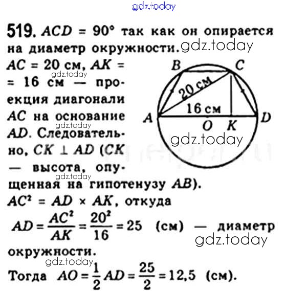 Ответы к § 15. Метрические соотношения в прямоугольном треугольнике Решение. Глава 3. Решение прямоугольных треугольников 519 Учебнику по Геометрии для 8 класса Мерзляк, Полонский Вентана-граф Алгоритм успеха 2015