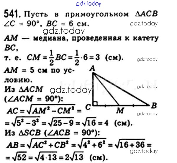 Ответы к § 16. Теорема Пифагора Решение. Глава 3. Решение прямоугольных треугольников 541 Учебнику по Геометрии для 8 класса Мерзляк, Полонский Вентана-граф Алгоритм успеха 2015