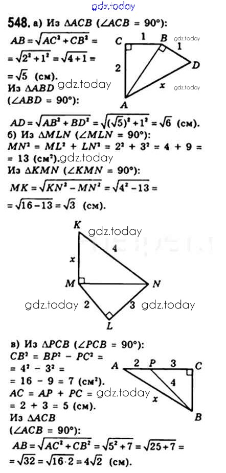Ответы к § 16. Теорема Пифагора Решение. Глава 3. Решение прямоугольных треугольников 548 Учебнику по Геометрии для 8 класса Мерзляк, Полонский Вентана-граф Алгоритм успеха 2015