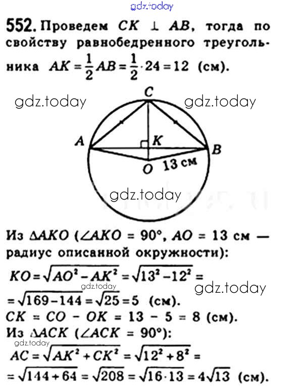 Ответы к § 16. Теорема Пифагора Решение. Глава 3. Решение прямоугольных треугольников 552 Учебнику по Геометрии для 8 класса Мерзляк, Полонский Вентана-граф Алгоритм успеха 2015