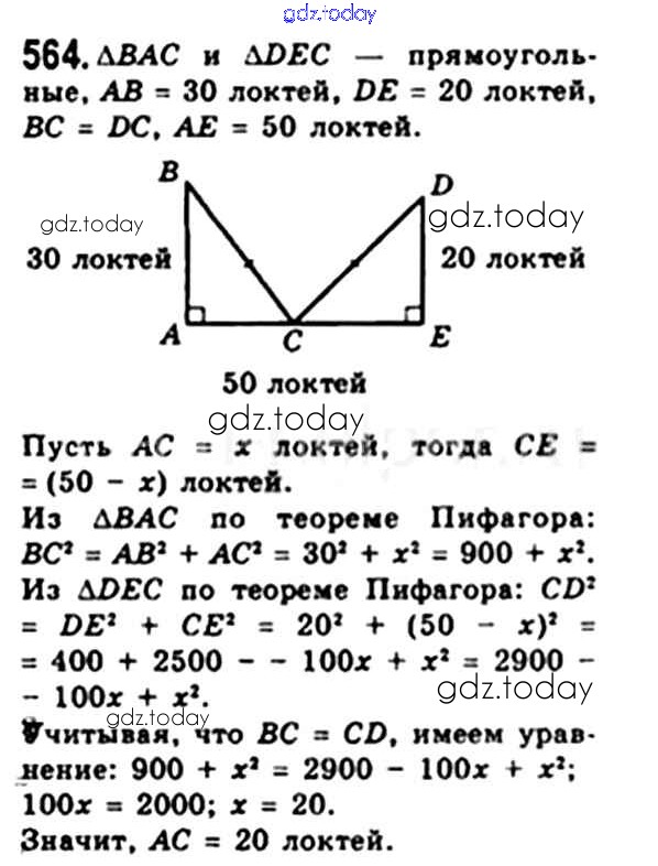 Ответы к § 16. Теорема Пифагора Решение. Глава 3. Решение прямоугольных треугольников 564 Учебнику по Геометрии для 8 класса Мерзляк, Полонский Вентана-граф Алгоритм успеха 2015