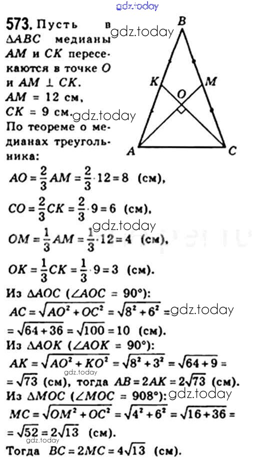 Ответы к § 16. Теорема Пифагора Решение. Глава 3. Решение прямоугольных треугольников 573 Учебнику по Геометрии для 8 класса Мерзляк, Полонский Вентана-граф Алгоритм успеха 2015