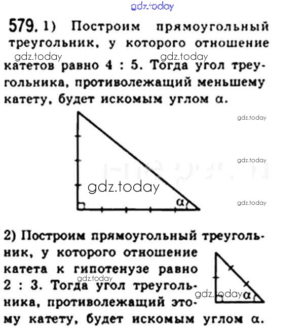 На страницах сайта gdz.today вы найдете учебный и вспомогательный материал, направленный на улучшения знаний школьной программы. ГДЗ - онлайн мир знаний § 17. Тригонометрические функции острого угла прямоугольного треугольника Решение. Глава 3. Решение прямоугольных треугольников 579 Учебнику по Геометрии для 8 класса Мерзляк, Полонский Вентана-граф Алгоритм успеха 2015