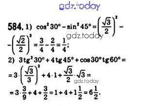 Ответы к § 17. Тригонометрические функции острого угла прямоугольного треугольника Решение. Глава 3. Решение прямоугольных треугольников 584 Учебнику по Геометрии для 8 класса Мерзляк, Полонский Вентана-граф Алгоритм успеха 2015