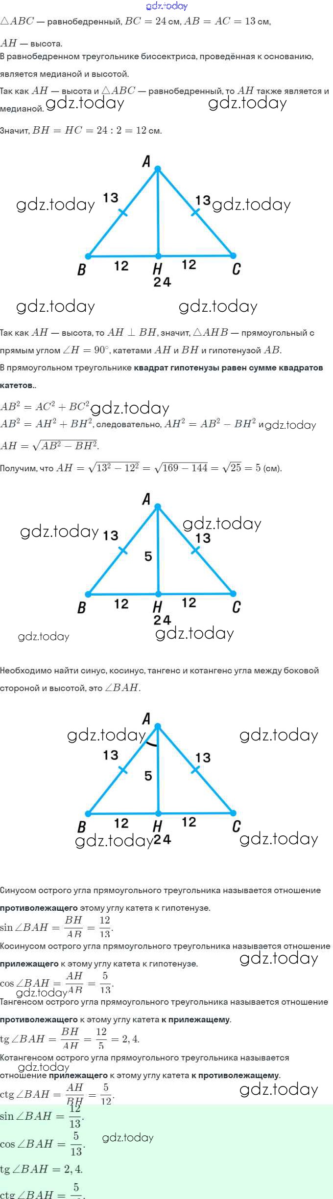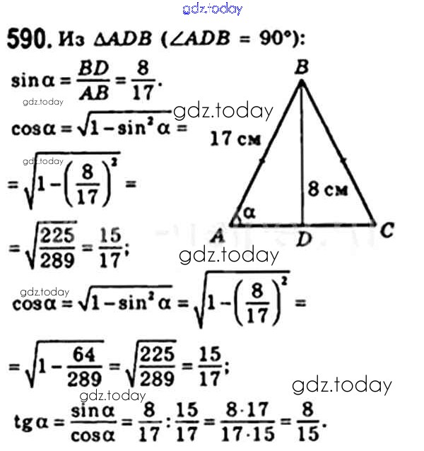 Ответы к § 17. Тригонометрические функции острого угла прямоугольного треугольника Решение. Глава 3. Решение прямоугольных треугольников 590 Учебнику по Геометрии для 8 класса Мерзляк, Полонский Вентана-граф Алгоритм успеха 2015
