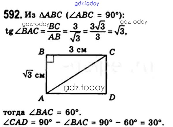 Ответы к § 17. Тригонометрические функции острого угла прямоугольного треугольника Решение. Глава 3. Решение прямоугольных треугольников 592 Учебнику по Геометрии для 8 класса Мерзляк, Полонский Вентана-граф Алгоритм успеха 2015