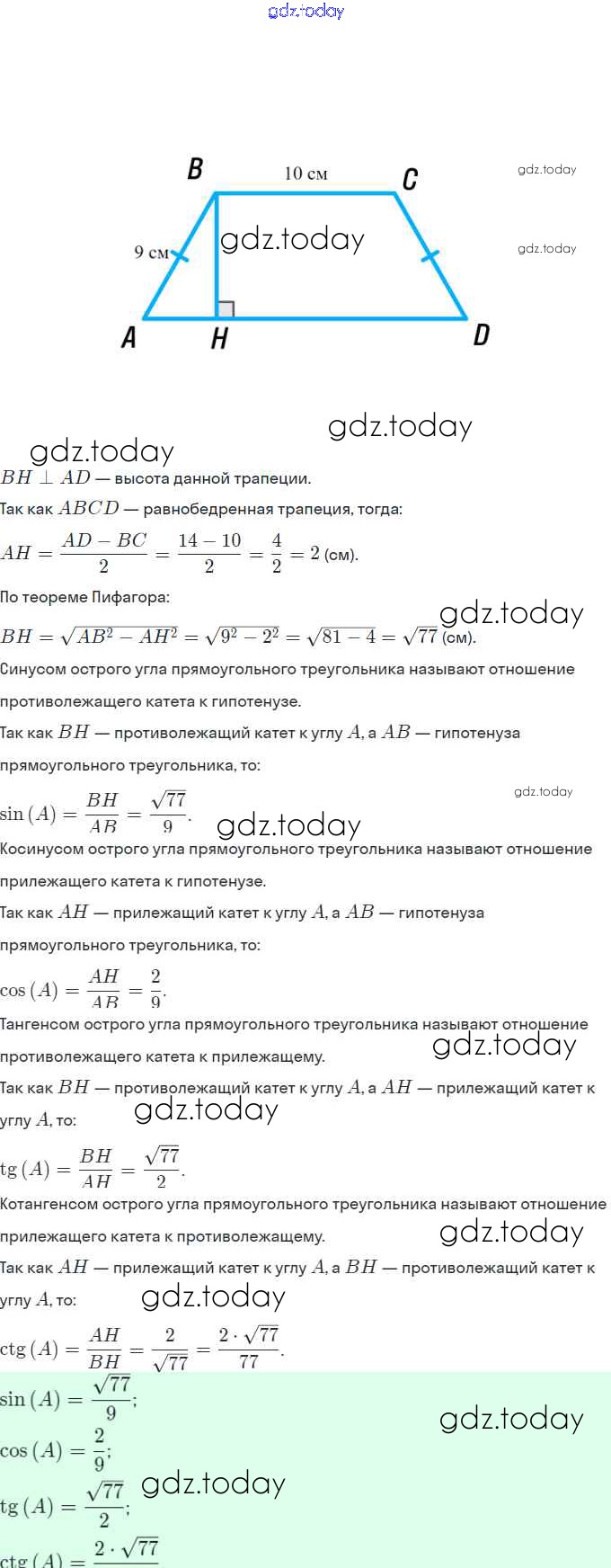 На страницах сайта gdz.today вы найдете учебный и вспомогательный материал, направленный на улучшения знаний школьной программы. ГДЗ - онлайн мир знаний § 17. Тригонометрические функции острого угла прямоугольного треугольника Решение. Глава 3. Решение прямоугольных треугольников 594 Учебнику по Геометрии для 8 класса Мерзляк, Полонский Вентана-граф Алгоритм успеха 2015
