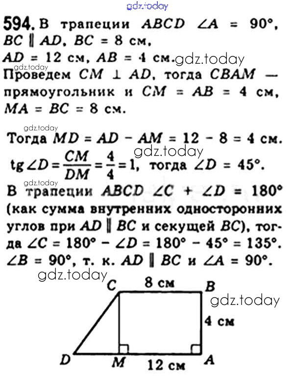 Ответы к § 17. Тригонометрические функции острого угла прямоугольного треугольника Решение. Глава 3. Решение прямоугольных треугольников 594 Учебнику по Геометрии для 8 класса Мерзляк, Полонский Вентана-граф Алгоритм успеха 2015