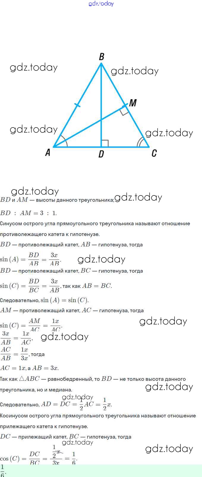 На страницах сайта gdz.today вы найдете учебный и вспомогательный материал, направленный на улучшения знаний школьной программы. ГДЗ - онлайн мир знаний § 17. Тригонометрические функции острого угла прямоугольного треугольника Решение. Глава 3. Решение прямоугольных треугольников 600 Учебнику по Геометрии для 8 класса Мерзляк, Полонский Вентана-граф Алгоритм успеха 2015