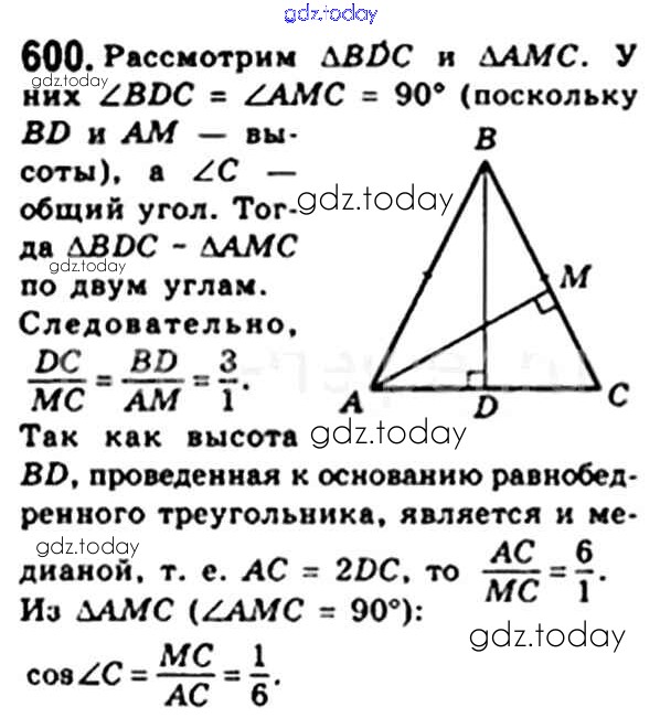 Ответы к § 17. Тригонометрические функции острого угла прямоугольного треугольника Решение. Глава 3. Решение прямоугольных треугольников 600 Учебнику по Геометрии для 8 класса Мерзляк, Полонский Вентана-граф Алгоритм успеха 2015