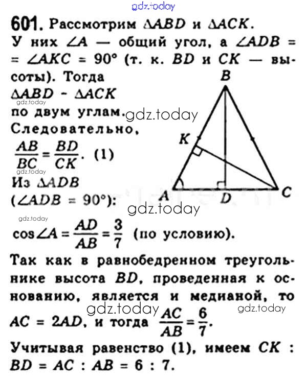 Ответы к § 17. Тригонометрические функции острого угла прямоугольного треугольника Решение. Глава 3. Решение прямоугольных треугольников 601 Учебнику по Геометрии для 8 класса Мерзляк, Полонский Вентана-граф Алгоритм успеха 2015