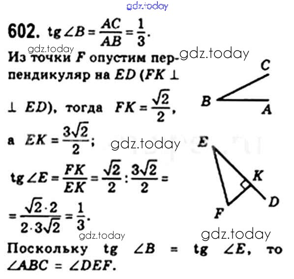 Ответы к § 17. Тригонометрические функции острого угла прямоугольного треугольника Решение. Глава 3. Решение прямоугольных треугольников 602 Учебнику по Геометрии для 8 класса Мерзляк, Полонский Вентана-граф Алгоритм успеха 2015