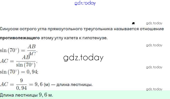 На страницах сайта gdz.today вы найдете учебный и вспомогательный материал, направленный на улучшения знаний школьной программы. ГДЗ - онлайн мир знаний § 18. Решение прямоугольных треугольников Решение. Глава 3. Решение прямоугольных треугольников 616 Учебнику по Геометрии для 8 класса Мерзляк, Полонский Вентана-граф Алгоритм успеха 2015