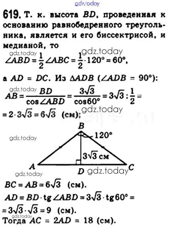 На страницах сайта gdz.today вы найдете учебный и вспомогательный материал, направленный на улучшения знаний школьной программы. ГДЗ - онлайн мир знаний § 18. Решение прямоугольных треугольников Решение. Глава 3. Решение прямоугольных треугольников 619 Учебнику по Геометрии для 8 класса Мерзляк, Полонский Вентана-граф Алгоритм успеха 2015