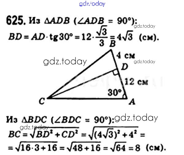 На страницах сайта gdz.today вы найдете учебный и вспомогательный материал, направленный на улучшения знаний школьной программы. ГДЗ - онлайн мир знаний § 18. Решение прямоугольных треугольников Решение. Глава 3. Решение прямоугольных треугольников 625 Учебнику по Геометрии для 8 класса Мерзляк, Полонский Вентана-граф Алгоритм успеха 2015