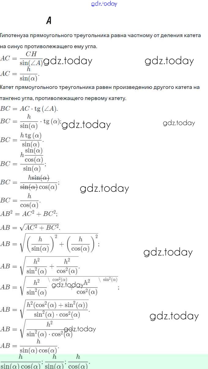На страницах сайта gdz.today вы найдете учебный и вспомогательный материал, направленный на улучшения знаний школьной программы. ГДЗ - онлайн мир знаний § 18. Решение прямоугольных треугольников Решение. Глава 3. Решение прямоугольных треугольников 630 Учебнику по Геометрии для 8 класса Мерзляк, Полонский Вентана-граф Алгоритм успеха 2015