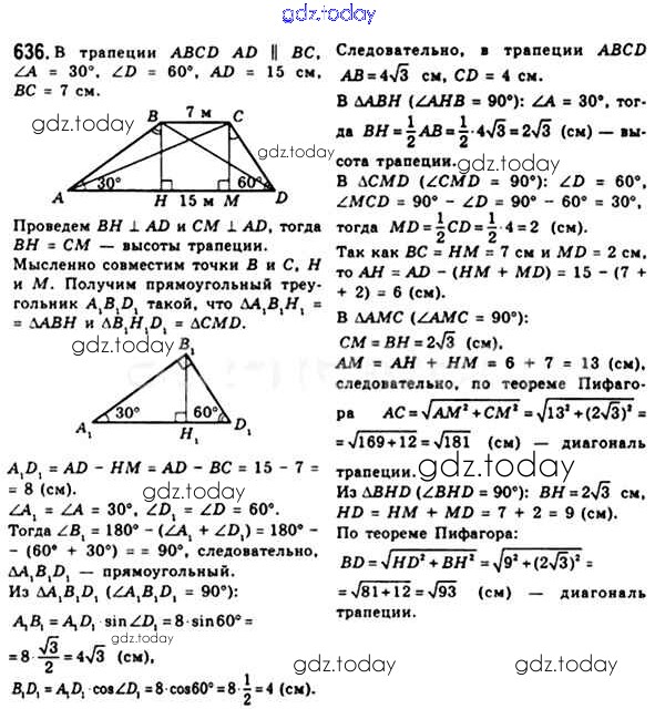 На страницах сайта gdz.today вы найдете учебный и вспомогательный материал, направленный на улучшения знаний школьной программы. ГДЗ - онлайн мир знаний § 18. Решение прямоугольных треугольников Решение. Глава 3. Решение прямоугольных треугольников 636 Учебнику по Геометрии для 8 класса Мерзляк, Полонский Вентана-граф Алгоритм успеха 2015